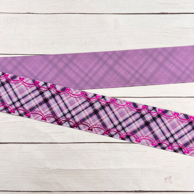 サテンレースチェックリボン 紫