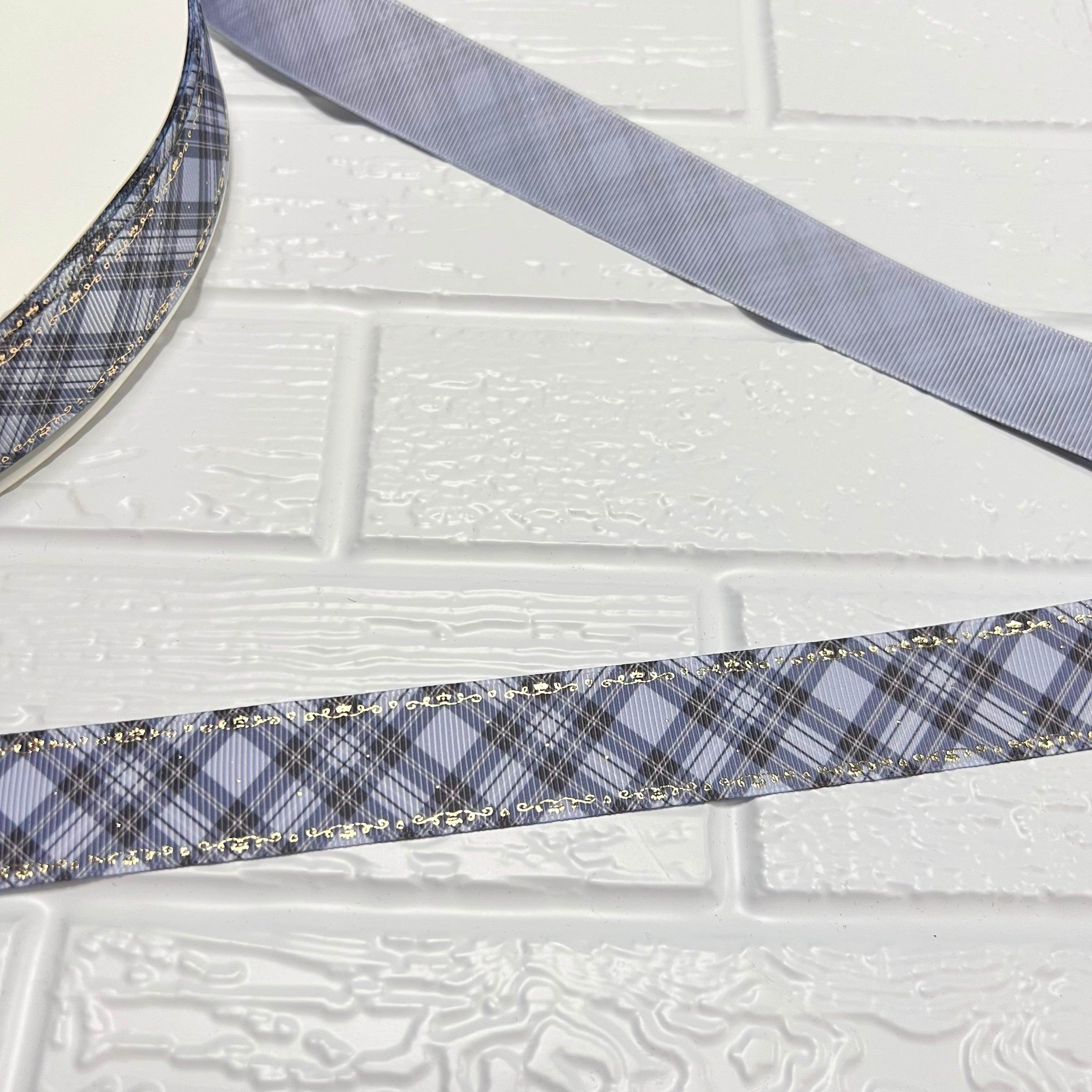 くすみ色 チェックリボン 25mm